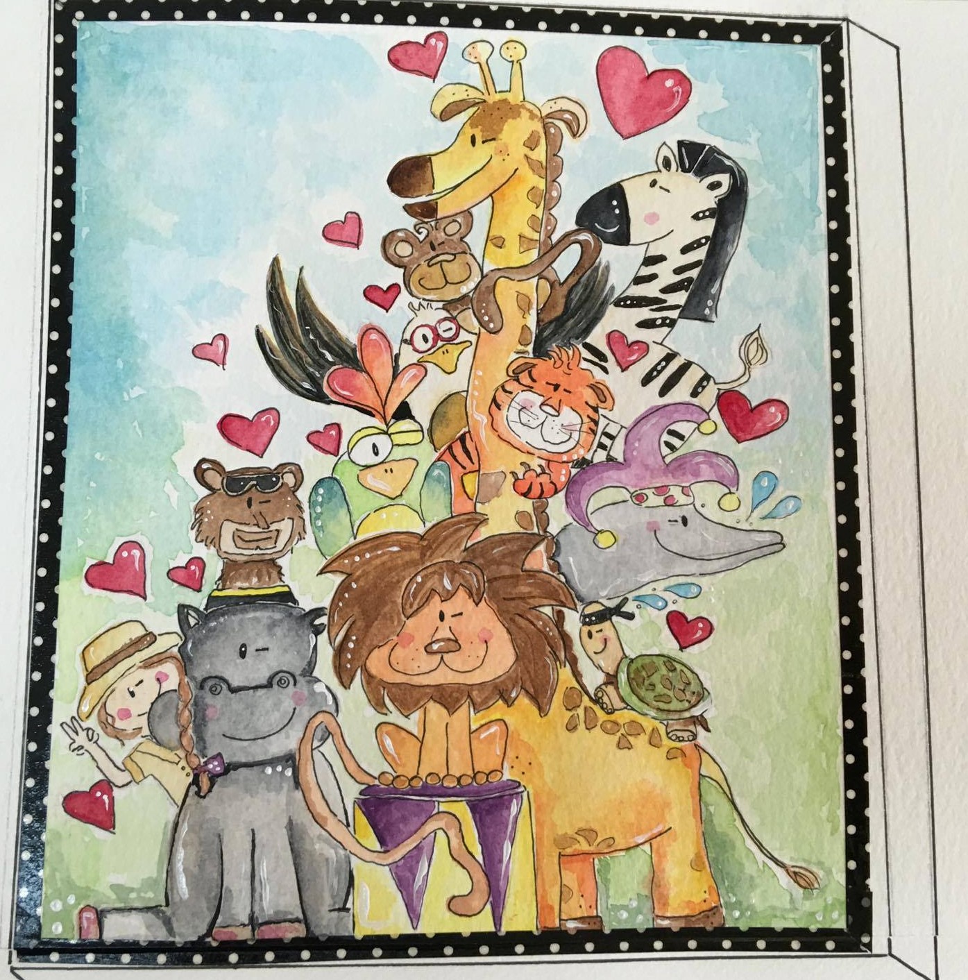 É a história de uma menina – Leonor, que vai ao zoológico no dia dos seus anos, e infelizmente vê uma girafa a ficar doente…os outros animais ajudam a girafa, cada um com uma especialidade, a se reabilitar, e no fim dá tudo certo, a girafa recuperada e feliz apaixona-se pela zebra.